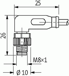 Stecker gewinkelt - Buchse geradeM8 - M12, 3-polig